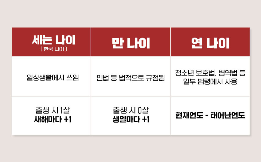 - 방송, 포털사이트, 언론 등에서 인물의 나이 표기가 모두 만 나이로 통일됩니다.