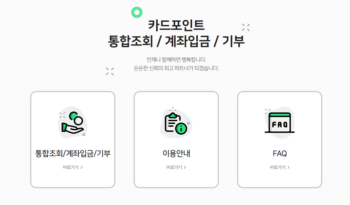 카드포인트통합조회 / 계좌입금 / 기부 언제나 함께하면 행복합니다. 든든한 신뢰의 최고 파트너가 되겠습니다.