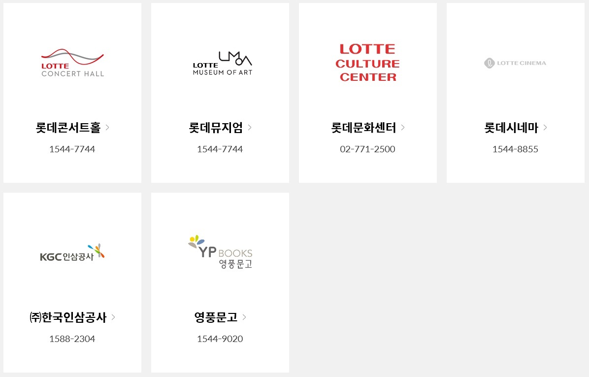 롯데상품권의 다섯 번째 사용처는 문화/예술/기타 분야입니다. 롯데상품권은 롯데의 계열인 다양한 문화시설에서 사용이 가능합니다. 가장 대표적인 곳이 바로 롯데시네마와 롯데문화센터입니다. 많은 분들이 평소에 자주 이용하는 시설이기 때문에 롯데상품권은 더욱더 유용하게 쓰입니다. 이외에도 롯데콘서트홀, 롯데뮤지엄, 한국인삼공사, 대형서점인 영풍문고에서도 사용이 가능합니다.